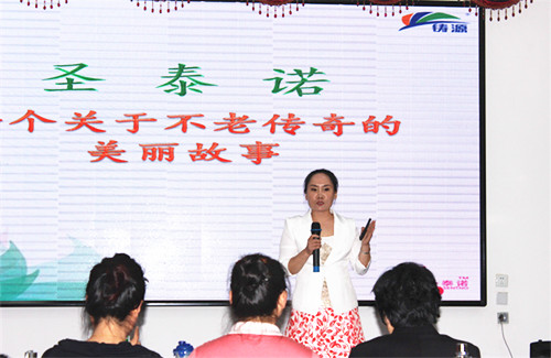 由河北分公司美容日化讲师刘晓莉老师为大家演绎关于不老传奇的美丽故事--圣泰诺!通过讲解,实验,体验让大家了解圣泰诺,掌握圣泰诺,最后喜欢上圣泰诺!