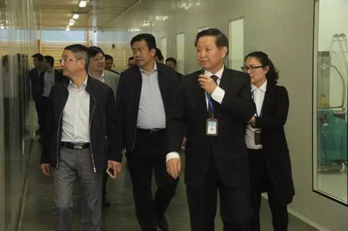 4月20日,常熟市副市长陈惠良、经信委主任邓国华一行专程考察隆力奇,隆力奇公司董事长徐之伟、总裁徐晓平出席陪同参观新工厂。