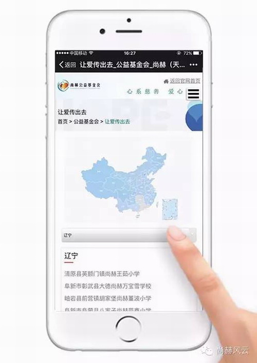 “让爱传出去”版块中,根据下拉菜单选择您所想要了解地区的公益小学相关详情。