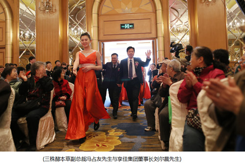 本次战略联盟获得两大集团的高度重视,出席本次启动仪式的三株集团高层有:三株酵本草副总裁冯占友先生、资深中医专家王龙卿教授、东北三省经理李红恩先生;享佳集团高层有:享佳集团董事长刘尔晨先生、享佳集团总经理陈春岩先生、金曙标集团董事长郭金彪先生;同时金曙标集团吕龙先生、金曙标高岩先生及会很多行业精英也出席本次大会。