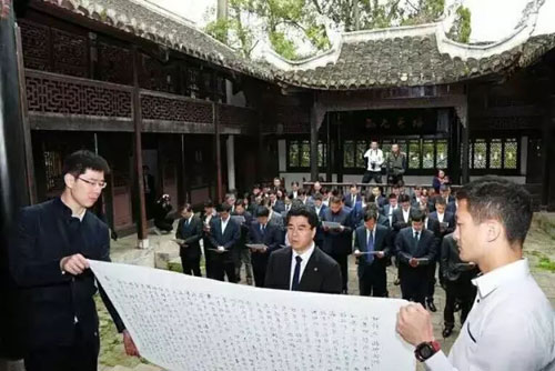 感谢此次龙场之行,感谢阳明宗师的千古垂训,感谢胡总的宏志敢愿!“上士闻道,勤而行之”,我虽不敢称上士,但有幸能感悟阳明宗师教诲,一定以阳明宗师为榜样,将“致良知”的文化在康满家推广开来,让我们的员工、我们的经销商知行合一,以“立志、勤学、改过、责善”的修为阶梯,以道驭术,正己化人,成就我们的员工、我们的企业、我们的合作伙伴。