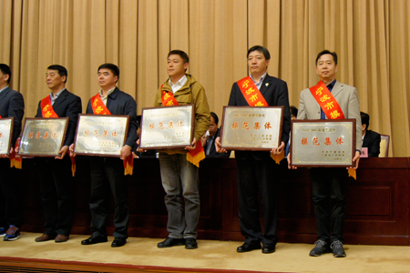 会上,宁波市总工会向2016年全国、省五一劳动奖状(章)、工人先锋号、2013—2015年度宁波市劳动模范、模范集体颁发了奖牌。宁波御坊堂生物科技有限公司研发技术部凭借技术创新、科技创新获得“模范集体”的荣誉,三生研发技术副总经理贾福怀作为代表上台接受表彰。