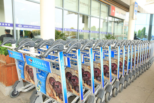 手推车形式的广告是机场内互动性强、辨识度高,并且是一对一为旅客提供服务的广告媒体,旅客人手一辆,覆盖了出发、到达的任何角落,广告到达率和关注度都较高。南通机场1993年开航,现已开通了到达国内外20多个城市的航班,比如北京、深圳、广州、西安、厦门、海口、韩国济州岛、泰国曼谷、日本大阪、名古屋等航线。2009年,国家民航总局将南通机场定位为上海国际航空枢纽的辅助机场。