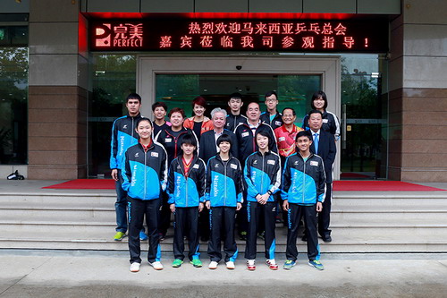 4月22日,在完美公司的支持下,来自马来西亚乒乓总会的球员们到访完美公司,古润金董事长接待了嘉宾一行。随后,他们前往中山市乒乓球馆进行集体训练。24日,大马乒乓球代表队将与中山市乒乓球代表队进行友谊比赛,切磋球技、促进交流。