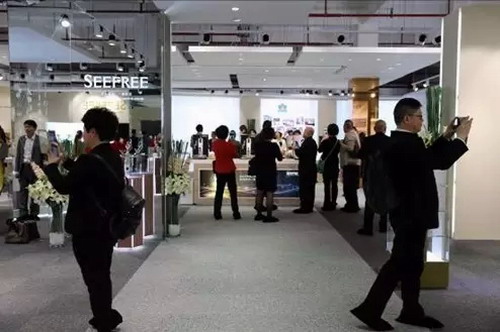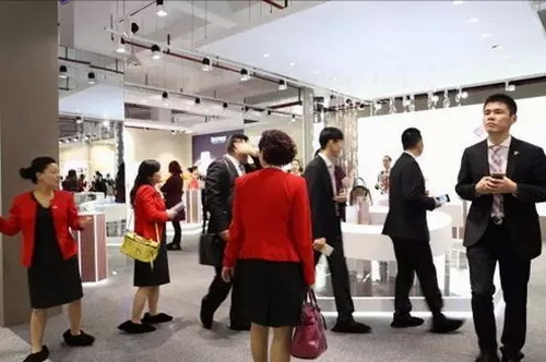 参会的各位高级总监在四层罗麦展馆厅频频拍照留念