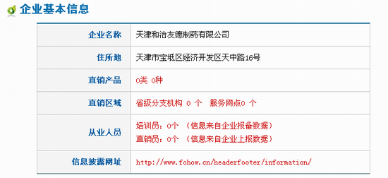 5月3日,商务部直销行业管理信息系统发布天津和治友德制药有限公司获得直销经营许可证。信息显示,天津和治友德制药有限公司是于2016年3月8日获得批准,4月21日备案公示。天津和治友德制药有限公司获批省级直销分支机构、服务网点、直销产品、直销培训员信息目前暂未公布。详情如下: