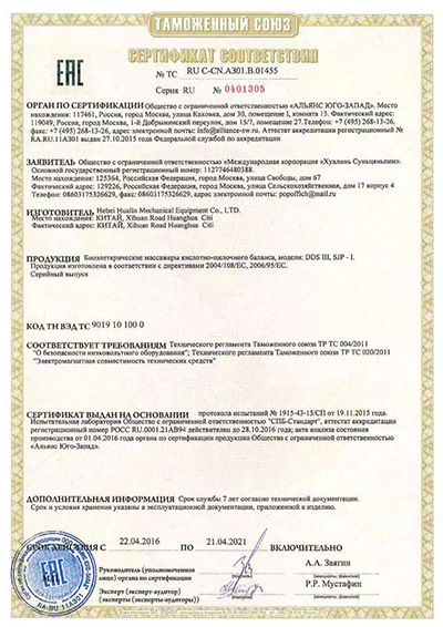 此前,酸碱平DDS按摩器已经获得了欧盟CE认证和美国FDA认证,我们的市场神器在欧盟27个成员国及美国等近百个国家畅通无阻。获得俄罗斯、白俄罗斯、哈萨克斯坦EAC认证,对提升产品形象及企业形象、事业家人更顺畅开拓国际市场将起到积极的推动作用。