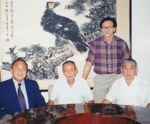 李文达(左一)、李惠森(后排)在与赵云宏(中)交流一个小时后,决定创办无限极。