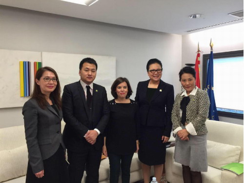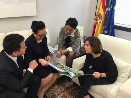 2016年5月5日,继昨日马德里市市长卡梅纳会见天狮高管一行之后,西班牙副首相索拉娅·.萨恩斯.德圣玛利亚亲切会见了出席纪念中西建交42周年“Hola 西班牙 Hola 天狮”系列文化交流活动的天狮集团李金元董事长长子、集团董事李宗民先生及天狮集团高管团队一行,西班牙各大主流媒体争相报道,西班牙举国关注此次中西建交42周年以来最大规模的民间文化交流盛会。