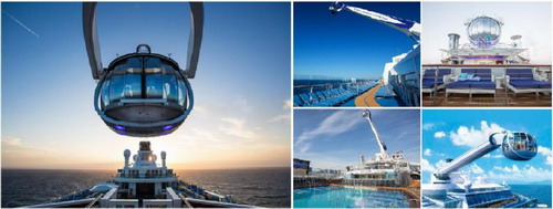 位于甲板第15层的“北极星”巨大摇臂和船体相连的透明玻璃舱是量子号的标志,是受英国“伦敦眼”的启发而建造,舱体为钻石玻璃钢设计,以360°摇臂支撑在距海平面91米高空,让游客将海景、目的地和船体尽收眼底!“北极星”是量子号所特有,船上的伙伴们可千万不要错过体验机会!