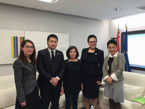 西班牙副首相德圣玛利亚女士(中)与天狮集团高管亲切合影