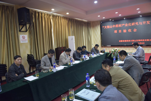 5月9日,六安市科技局在安徽省康美来大别山生物科技有限公司召开了“大别山中药材产业化研究与开发”项目验收会。市科技局张科长、周工程师、县科技局朱局长、朱主任、安徽大学张教授、沈教授、安徽科技学院孙教授、合肥工业大学李教授、安徽中医药大学刘教授、会计师事务所负责人以及项目承担单位有关人员参加了会议。安徽大学张教授担任验收会组长,会议由市科技局张科长主持。