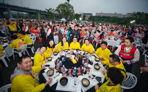 欢迎晚宴上,首批4000多名中脉经销人员和韩国政府、首尔市政府多位领导一起共同品尝韩国养生美食“参鸡汤”,为首尔再添一项新纪录。