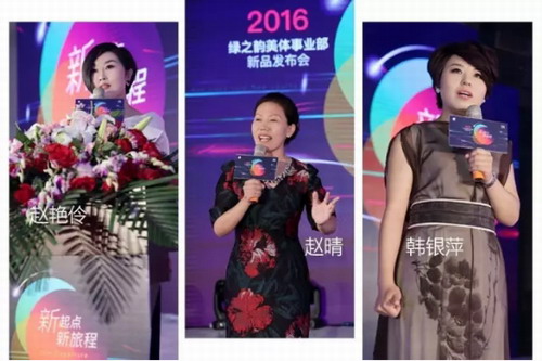 绿之韵DS美体事业部的管理团队也首次集体亮相并做精彩分享。她们是绿之韵DS美体事业部生产总裁赵晴女士、绿之韵DS美体事业部教育总裁赵艳伶女士、绿之韵DS美体事业部市场总裁韩银萍女士。