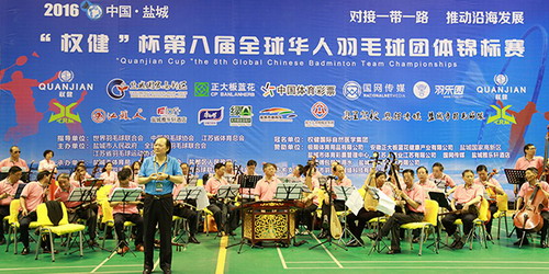 2016年5月13日,“权健”杯第八届全球华人羽毛球团体锦标赛在盐城市体育馆隆重开幕,开幕式在盐城市军歌嘹亮艺术团和盐城市旗袍会的精彩演出中拉开序幕。