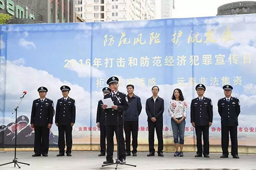 根据公安部统一部署,2016年5月15日,云南省公安厅、省政府金融办、昆明市公安局以及相关部门和单位在昆明市南屏步行街联合开展“2016年打击和防范经济犯罪宣传日活动”。理想科技集团作为特邀企业参加了此次宣传活动。