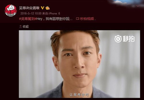 近日,向来低调处理私人感情的吴尊,竟在微博上发出让人捉摸不透的视频,告白说:“让我养你吧”。微博一出,随即引起多方猜测,吴尊到底要“养”谁?怎么“养”你?一下子成为最近娱乐圈至八卦的新闻!