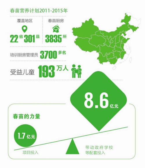 基金会成立的当年,便有300所春苗厨房破土而出,