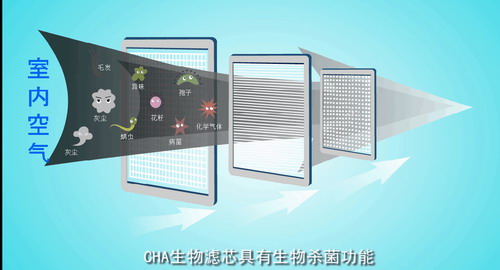 带病菌、异味的空气经过CHA生物滤芯,被本草颗粒吸附后进行高效的分解,灭杀;