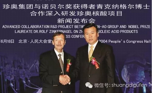 那么,2004年,当陈玉松与诺贝尔生理学及医学奖得主青克纳格尔博士在人民大会堂签约后,珍奥、双迪便开启了中国企业家与诺奖得主合作的先河,这就是一种因缘带来了机遇。