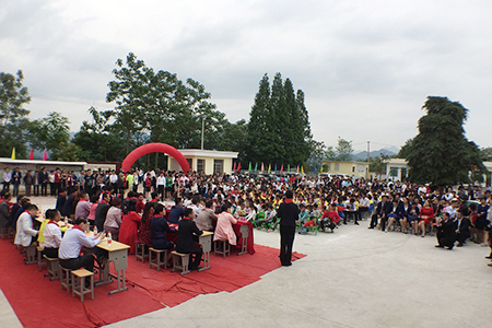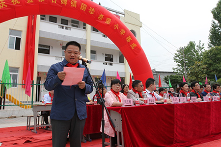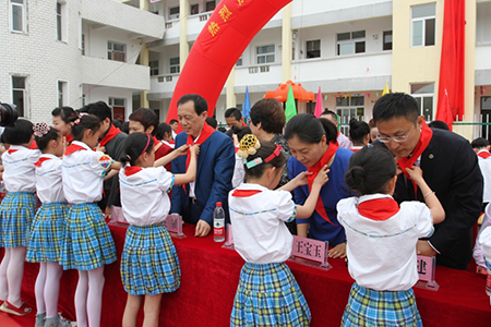 上午10时,落成仪式正式开始,希望小学的少先队员为到场的嘉宾佩戴红领巾。古碑镇人民政府镇长余利群致辞,他对新时代健康产业集团和北京国珍爱心基金会的义举深表感谢。他表示新时代人伸出的援手,大大改善了古碑镇国珍希望小学的教学条件,提高了教学质量。为了帮助孩子们快乐成长,随后,新时代人向国珍希望小学的学生赠送了礼物。
