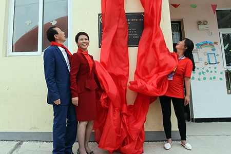 金寨县教育局工会曹福东主席向捐资人王梅女士颁发了荣誉校长证书并揭牌。接过证书的王梅女士感慨万千,她说,作为家乡人,又出生在学校的她对校园有着不一样的感情,选择金寨是因为这里是“红军的摇篮、将军的故乡”,曾诞生过59位开国大将,是著名的革命老区。王梅表示,今后她将每年举办红色之旅,缅怀革命先烈,践行四特精神,延续对国珍希望小学的捐助工作,带领更多的伙伴成为国珍希望小学的捐资助学的楷模。