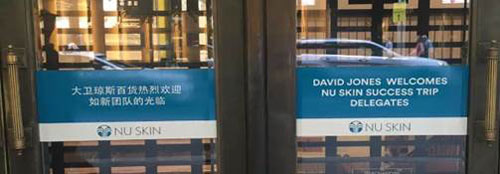 澳洲顶级精品百货David Jones看好如新大中华伙伴的消费潜力, 门口陈列中英文告示, 热烈欢迎如新团队的光临