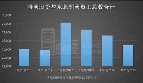 面包财经翻查财报发现:哈药股份2015年底员工人数为17866人,比2014年减少了707人,比2013年减少1322人。东北制药也不例外,2015年东北制药的员工人数较上年减少了424人。