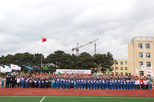 ▲第46所辽宁省阜新市彰武县四合城尚赫苗鑫学校揭牌仪式合影留念