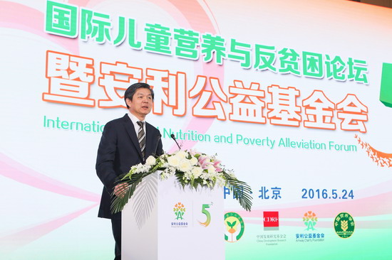 国际儿童营养与反贫困论坛由中国儿童少年基金会和安利公益基金会共同主办,来自全国妇联、民政部、联合国儿基会、中国儿童少年基金会、中国发展研究基金会、北京师范大学公益研究院、农村教育行动计划等政府和公益机构负责人及营养领域专家汇聚一堂,重点探讨分析我国贫困地区儿童营养健康问题,解读国家政策措施,倡导政府、民间齐心合力、群策群力,为推动解决贫困地区儿童营养问题研拟精准扶贫方案。