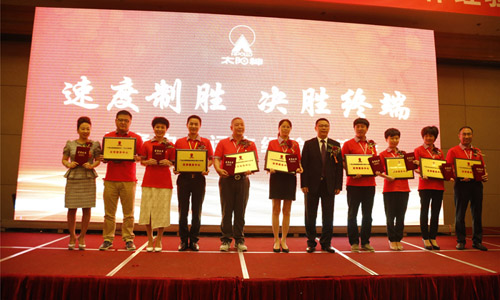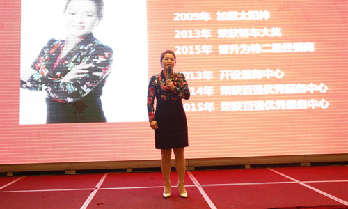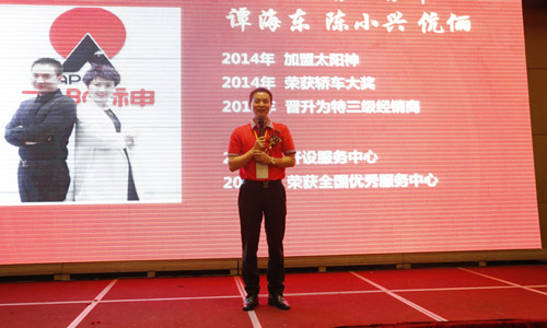 接着,会议对2015年度十强服务中心进行了隆重表彰。其中,三位优秀店长代表还为伙伴们带来了如何运作服务中心的经验分享,让伙伴们受益匪浅。最后,杜总为本次会议作总结,希望伙伴们能够学有所用,真正将之融入到市场当中去,为太阳神三五规划百亿目标的实现贡献更多力量。