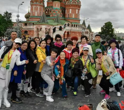 最后我们来到了色彩斑斓的瓦西里升天教堂。瓦西里升天教堂,又译圣瓦西里大教堂,为俄罗斯的象征,其艳绝的色彩、无序的线条、洋葱的尖顶成为俄罗斯各地教堂的典范,充满童话色彩。瓦西里升天大教堂是俄罗斯东正教堂,显示了16世纪俄罗斯民间建筑艺术风格,整座教堂由九座塔楼巧妙地组合为一体,在高高的底座上耸立着八个色彩艳丽、形体下满的塔楼,簇拥着中心塔。这是莫斯科为纪念加冕“全俄罗斯的沙皇”伊凡雷帝而建。