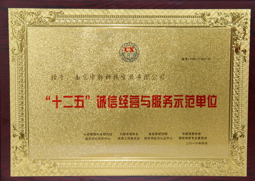 中脉获“十二五”诚信经营与服务示范单位称号