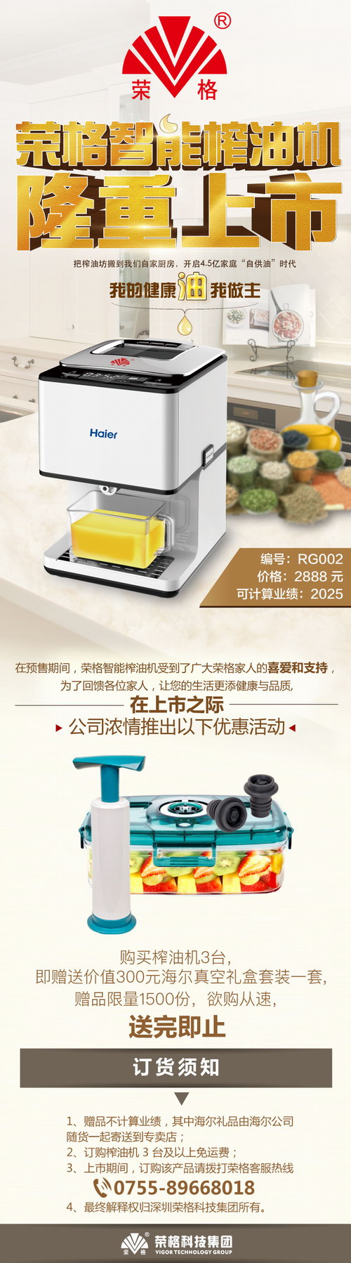 把榨油坊搬进厨房 荣格智能榨油机隆重上市