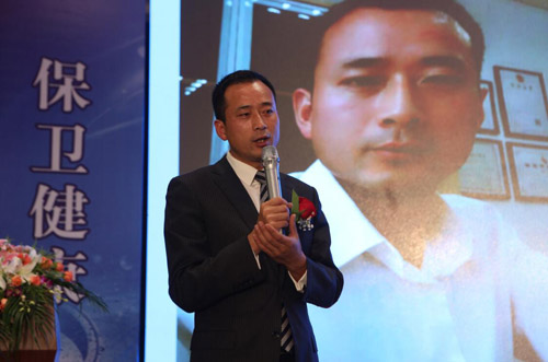 直销市场总监王秀斌分享了卫康当前的大爱之举——“百万家庭无癌症公益行动”有关内容。