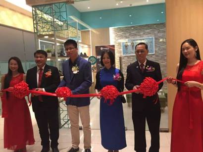 东南亚首家能量鞋体验厅正式落成,隆力奇高级经销商龚丽君女士、Alanx先生、Michael Lim先生及马来西亚分公司贾典总经理携手启动本次剪彩仪式,标志着能量鞋产品在东南亚市场的推广又翻开了一幅新的篇章。