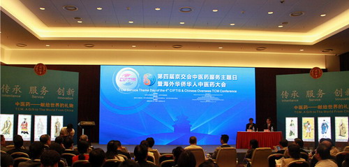 29日上午,第四届京交会中医服务主题日暨海外华侨华人中医药大会在国家会议中心举行,出席大会的领导及嘉宾有,商务部副部长房爱卿、国务院侨办副主任郭军、国家中医药管理局副局长于文明、北京市副市长林克庆、北京市政府侨办主任刘春锋、北京市中医药管理局屠志涛、北京市卫生计生委主任方来英以及中医药行业相关领导和海外华侨们。