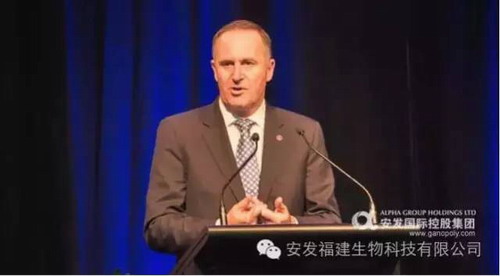 (新西兰总理约翰·基(Rt. Hon John Key)在会上发言)