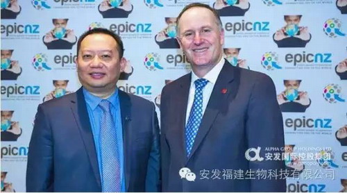 (高炜总裁、安发新西兰总经理陈晓燕女士与新西兰总理约翰·基(Rt. Hon John Key)合影)