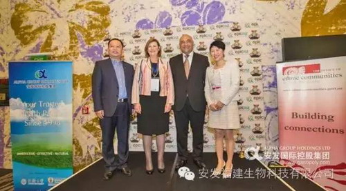 (高炜总裁、陈晓燕总经理与民族事务部部长Hon PesetaSam Lotu-Iiga(右二)、内政部副部长Helen Wyn(左二)合影)