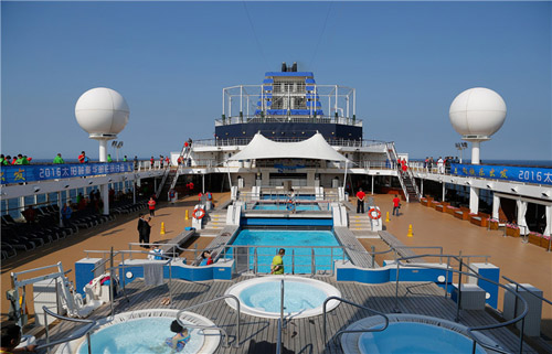 6月2日,太阳神豪华邮轮游研讨第二天,精彩陆续上演!经过一晚的前行,邮轮从上海港出发,经由公海向韩国进发。 一大早,伙伴们便早早起床,开始在邮轮上玩转开来。巡船的、游泳的、喝酒的、吃美食的、自拍的、看海的、K歌的、欣赏表演的……好不放松,好不惬意!