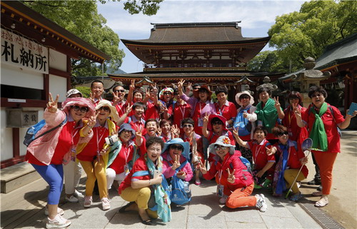 今天的第一站,是福冈著名风景区——太宰府。据悉,太宰府曾是日本九州的首府,历时五百多年,是日本学问之神菅原道真的本宫,是日本国家级文化遗产。伙伴们来到这里,纷纷被其悠久的文化历史,动人的传说和美丽的风景深深吸引。
