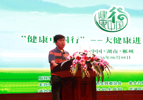 雄壮宏伟的国歌拉开了本次大会的序幕,一段《服务社区 走进家庭》视频引导大家进入今天大会的主题。随后郴州市北湖区政府副区长曾忠良为本次大会做开场致辞,曾副区长首先对天士力控股集团金士力佳友公司领导表示热烈的欢迎,向与会者介绍了郴州当地的经济和社会状况,特别是医疗和卫生发展现状,对金士力佳友“大健康中国行”—大健康进社区活动表示大力支持,并预祝大会圆满成功。