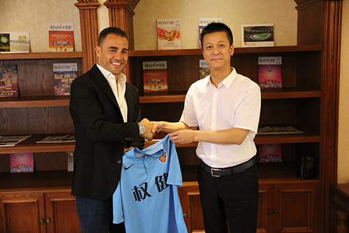 束昱辉与天津权健队新任主帅卡纳瓦罗会面