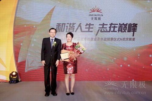 授章仪式上,吕学军先生代表公司致辞,“选择需要智慧,新晋升的5位高级业务总监,当年选择这份事业的时候,无限极还是一个默默无闻的小公司!今天,公司已经壮大,他们也登上了这个成功的舞台,恭喜他们!”