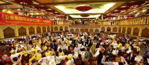 歌诗达邮轮幸运号船长携全体高级官员以邮轮特有的方式为卫康的贵宾送上祝福。