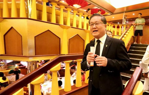 直销运营总裁蔡宏明现场助兴,倾情演唱,再次将晚会推向高潮。