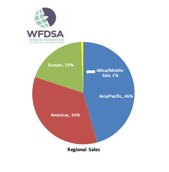 近日,世界直销协会(WFDSA)公布了2015年全球直销行业年度报告。报告显示,2015年,全球直销行业销售额再创纪录,达1837.29亿美元,同比增长7.7%。其中,欧洲市场销售额占比19%,美洲市场销售额占比34%,非洲和中东地区占比1%,亚洲/太平洋地区占比46%。