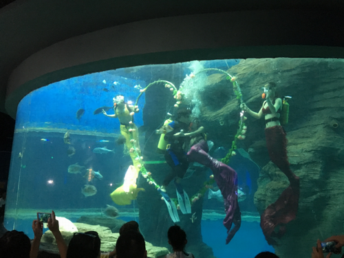 午餐后来到了占地2.1公顷的海洋之窗,景区由神秘的大海、远古海洋、时光隧道、珊瑚海、海上丝绸之路等共16大主题组成,大家还观看了美人鱼的表演,甚是喜欢。最后不得不与北海说再见返回南宁。