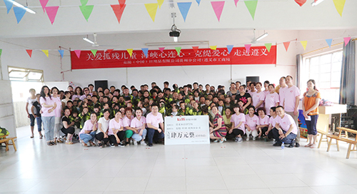 还记得这首儿时朗朗上口的童谣吗?欢快的旋律、美妙的歌词,唱诵着民族的融合及祖国未来的繁荣盛景。克缇(中国)很荣幸,见证与参与了大中国发展的一路腾飞,同时不忘感恩回报,用我们的大爱为这样一群特殊的孩子送去六一祝福。全球“六一儿童节”,克缇(中国)来到贵州遵义,发起了一场名为“关爱孤残儿童 海峡心连心”的公益活动。不仅得到了学校和孩子们的热烈欢迎,同时得到了遵义市工商局领导们的一致好评。克缇(中国)云贵川区经理金洪、克缇(中国)云贵川区外事经理邹胜及分公司同事们携20多位克缇家人一起与小朋友们共度了一个难忘的“六一”儿童节。